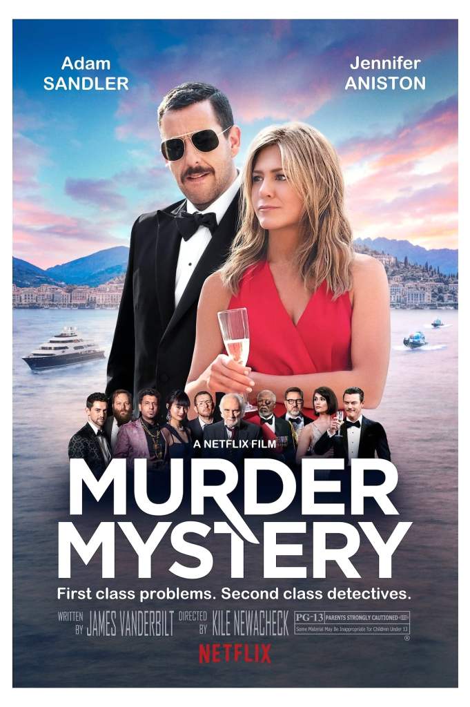 One Hour and thirty-seven minutes marks the time that I laughed during the comedy-murder film ‘Murder Mystery’ starring Jennifer Aniston (Audrey Spitz) and Adam Sandler (Nick Spitz) directed by Kyle Newacheck.